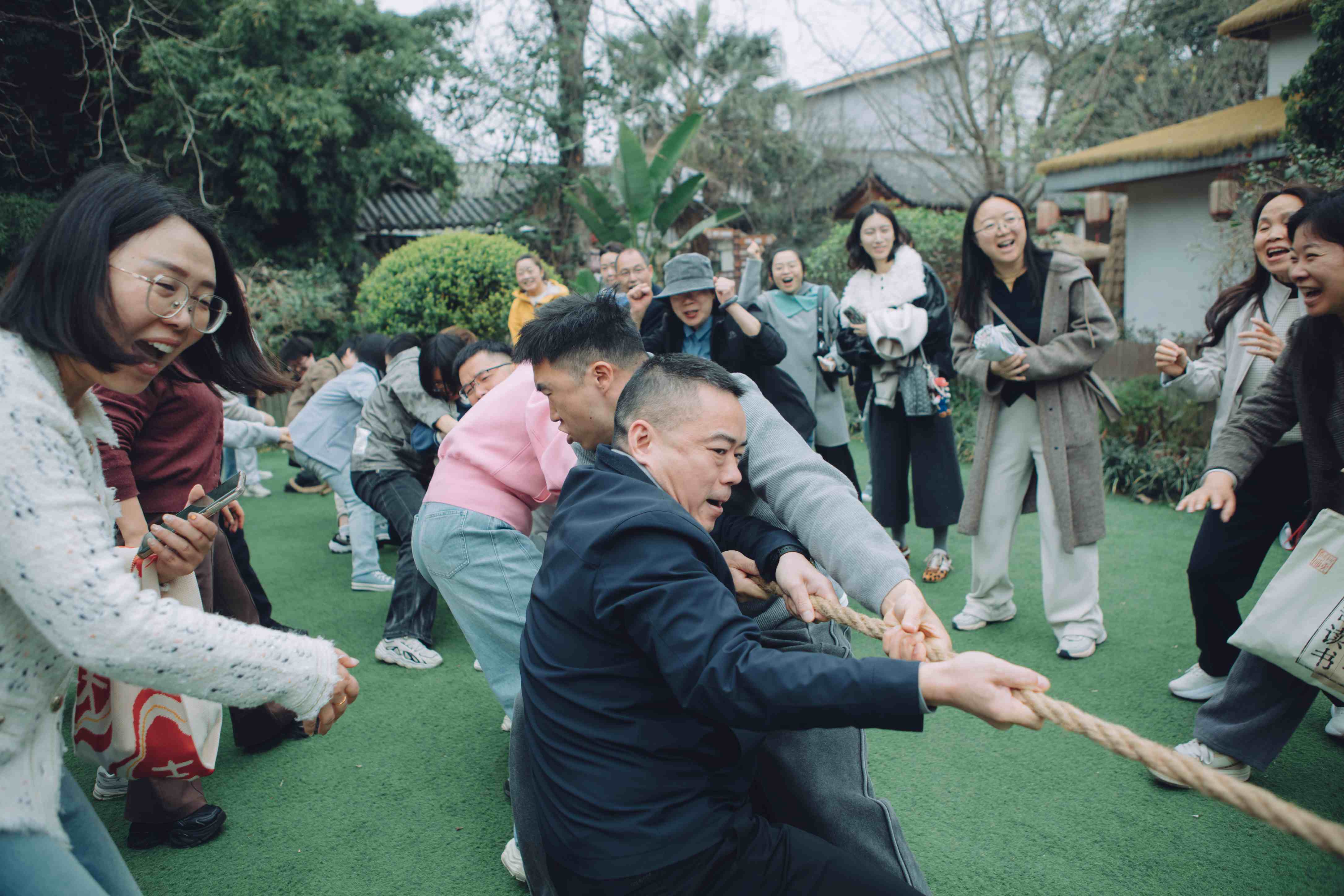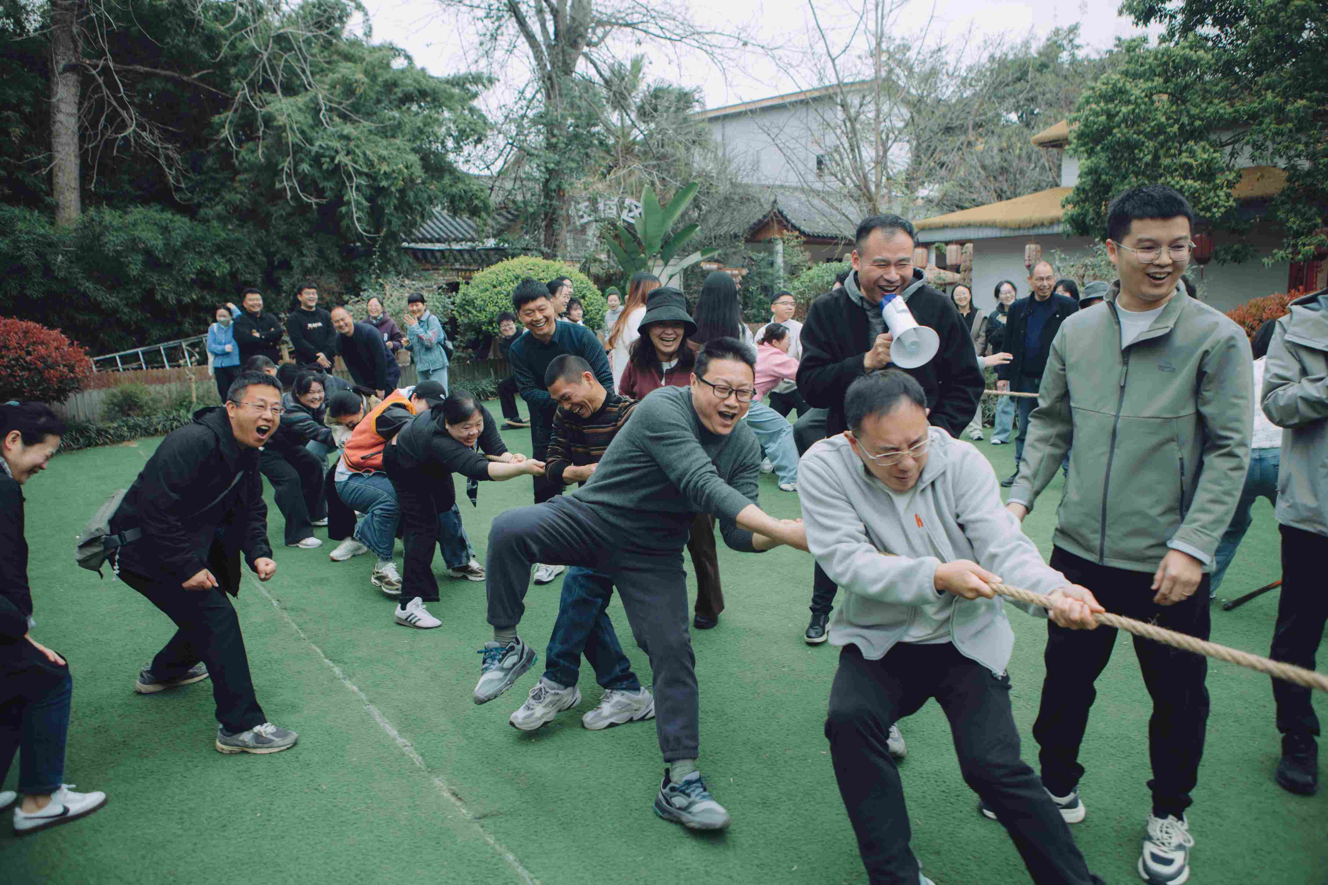 清风送爽,梅林飘香。全体参与职工准时在指定地点集合,一张张灿烂的笑脸在镜头中定格,为此次活动拉开了充满活力的序幕。随后进行的拔河比赛将现场气氛推向高潮。比赛以事业部为单位,采用单循环赛制展开激烈角逐。赛场上,各队队员紧握长绳、扎稳马步,全力以赴;赛场边,加油声、呐喊声、欢笑声此起彼伏。一根麻绳,串联起力量与技巧的较量,也凝聚起团队的协作与拼搏精神。午后,大家或结伴漫步花海,欣赏春日盛景;或围坐品茗闲谈,享受悠然时光。